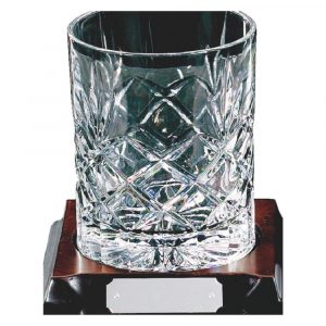 Single Full Cut Crystal Whisky Glass on Wood Stand