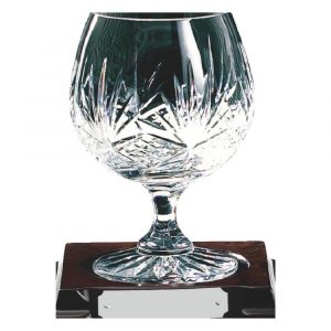 Single Cut Crystal Brandy Glass on Piano Finish Burle Wood Stand