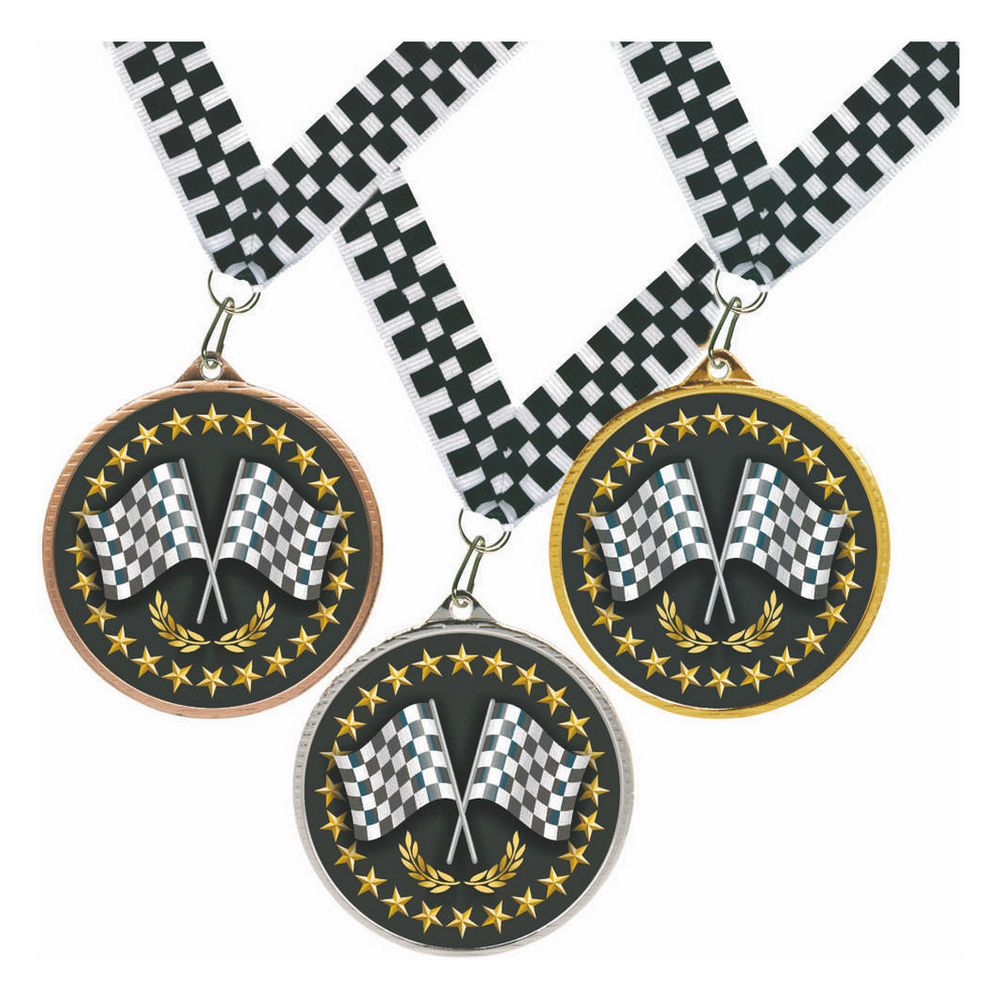 55mm Cross Flags Medal + Chequered Ribbon