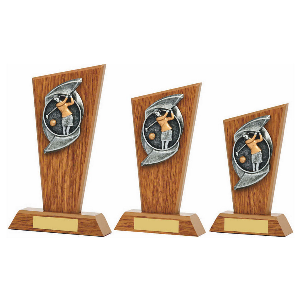 Nickel Plate Claret Jug Golf Trophy on Tall Wood Plinth