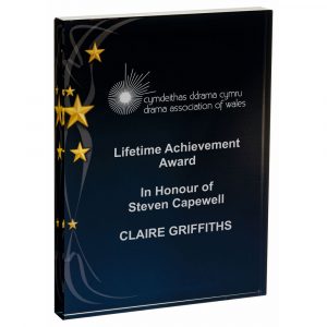 Rectangular Glass Award – Black Background with Gold Stars – Thickness 20mm