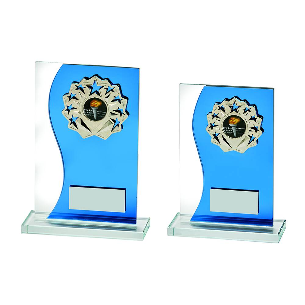 Blue Mirror Glass Stand with Metal Trim