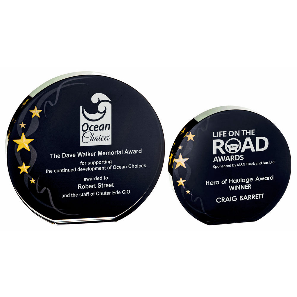 Circular Glass Award – Black Background with Gold Stars