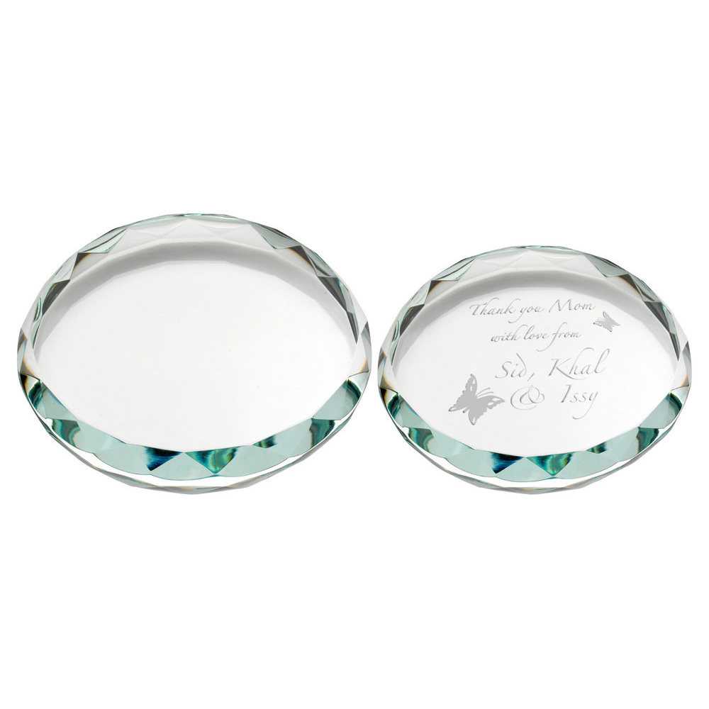 CLEAR GLASS ROUND PAPERWEIGHT WITH FACETED EDGE (19mm THICK)