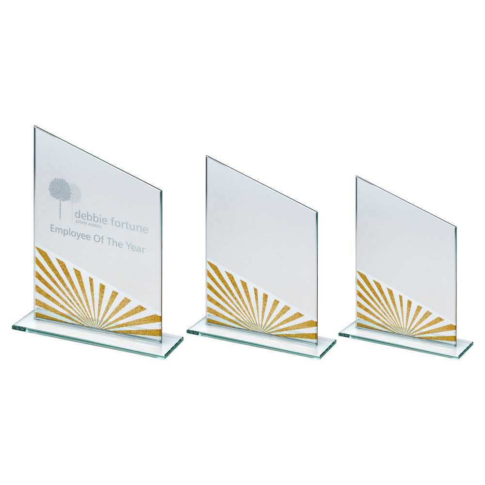 JADE GLASS ANGLED PLAQUE WITH GOLD/SILVER GLITTER DETAIL (4mm THICK)