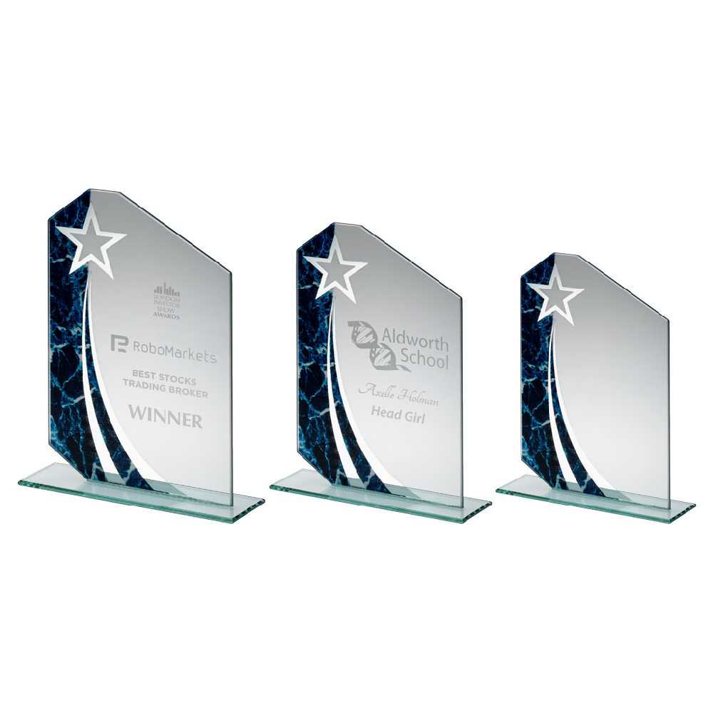 JADE GLASS PLAQUE WITH BLUE/BLACK MARBLE DESIGN (4mm THICK)