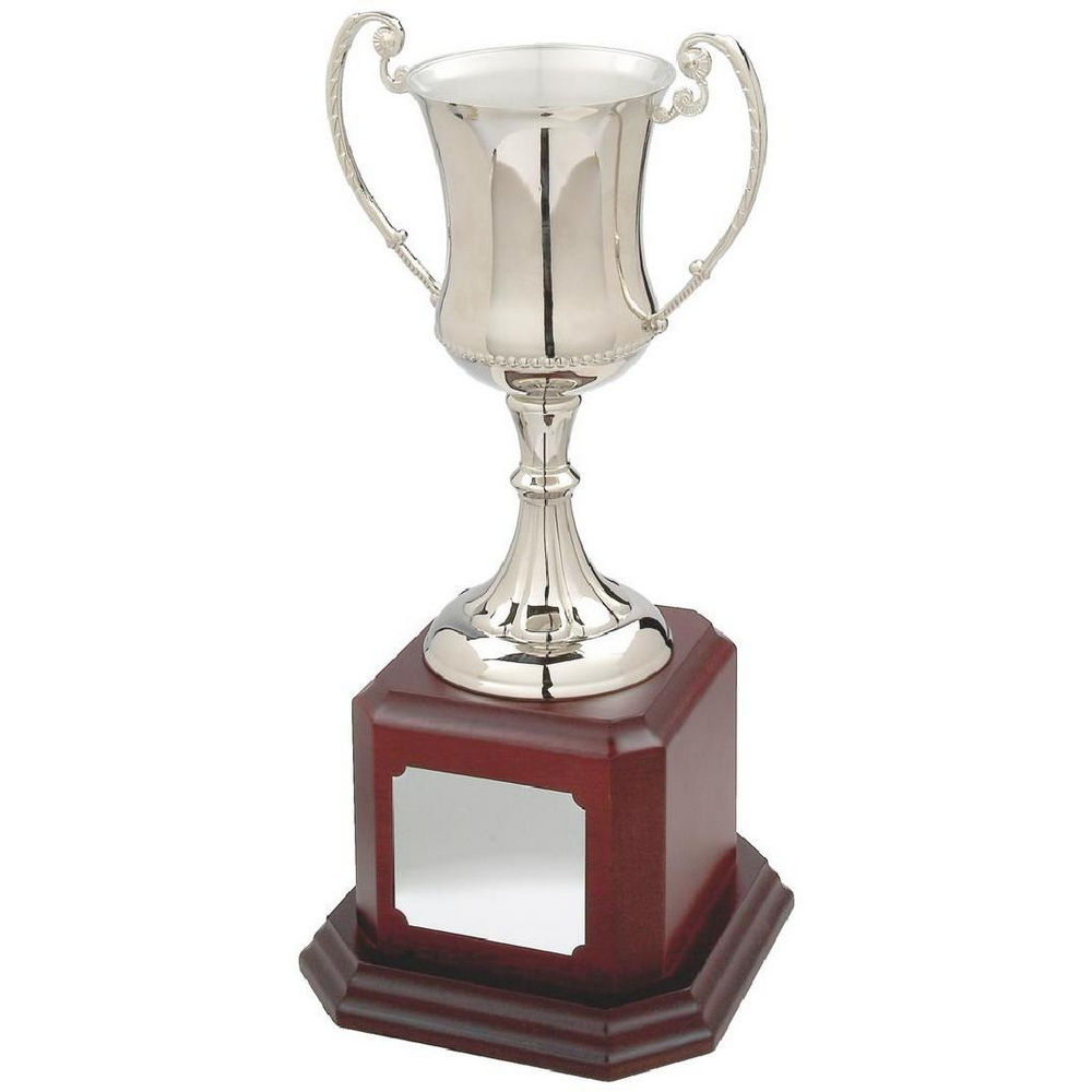 Large Waisted Nickel Plated Trophy Cup on Wood Base