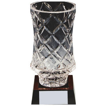 Pair of Cut Crystal Brandy Glasses on Burle Wood Stand