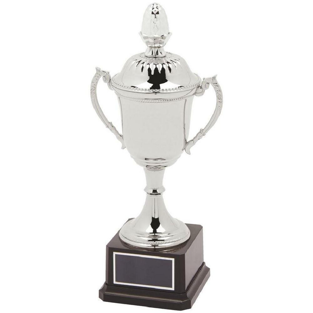 Large Waisted Nickel Plated Trophy Cup on Wood Base