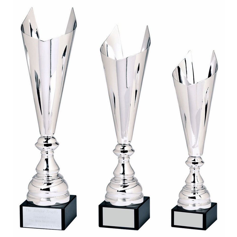 Large Waisted Nickel Plated Trophy Cup on Wood Base